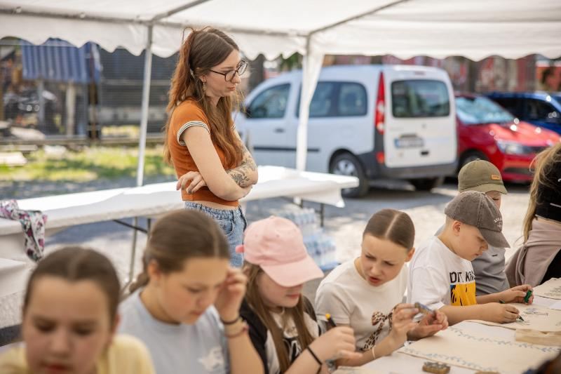 Na Likovnu koloniju stigla su i djeca HKUD-a Petar Zrinski te njihovi gosti Međunarodne smotre dječjeg folklora iz Litve koji su sudjelovali na likovnoj radionici. Pod vodstvom umjetnice Tonke Špoljar, čiju samostalnu izložbu trenutno možete pogledati u galeriji Udruge Artoratorij, 50tak djece izradilo je grafičke otiske na platnenim vrečicama i stvorilo trajnu uspomenu na posjet Bajeru.