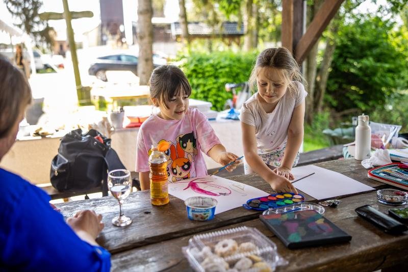 Na Likovnu koloniju stigla su i djeca HKUD-a Petar Zrinski te njihovi gosti Međunarodne smotre dječjeg folklora iz Litve koji su sudjelovali na likovnoj radionici. Pod vodstvom umjetnice Tonke Špoljar, čiju samostalnu izložbu trenutno možete pogledati u galeriji Udruge Artoratorij, 50tak djece izradilo je grafičke otiske na platnenim vrečicama i stvorilo trajnu uspomenu na posjet Bajeru.
