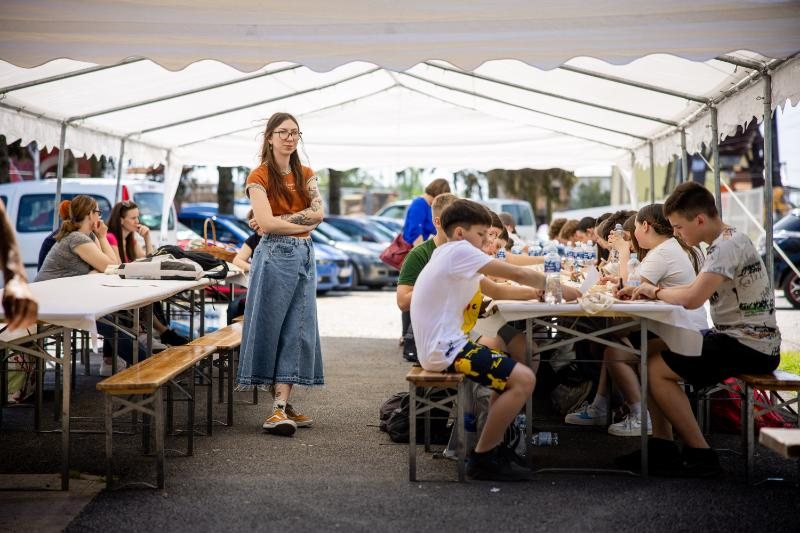 Na Likovnu koloniju stigla su i djeca HKUD-a Petar Zrinski te njihovi gosti Međunarodne smotre dječjeg folklora iz Litve koji su sudjelovali na likovnoj radionici. Pod vodstvom umjetnice Tonke Špoljar, čiju samostalnu izložbu trenutno možete pogledati u galeriji Udruge Artoratorij, 50tak djece izradilo je grafičke otiske na platnenim vrečicama i stvorilo trajnu uspomenu na posjet Bajeru.