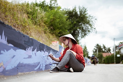 Drugi dio programa odnosi se na oslikavanje postojećih i novonastalih javnih betonskih površina u Gradu Vrbovcu kao što su potporni zidovi ili pješačke zone. Unutar ove jedinice već su oslikane četiri površine u partnerstvu sa vrbovečkom Udrugom Artoratorij. Od lokacija za oslikavanje u 2024. godini odabrana je površina novog potpornog zida u vrbovečkom naselju Celine čije je oslikavanje izvedeno po ilustracijama vizualne umjetnice Anite Kos koja je izradila 21 suvremenu ilustraciju verzije priče “ Ježeva kućica”, dok je pješačka zona u blizini gradskog dječjeg igrališta oslikana interaktivnim poligonom putem kreativnih radionica za djecu i mlade koje su održali članovi Udruge Artoratorij.
